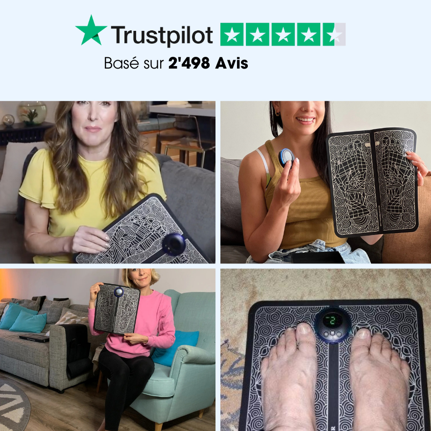 Soyez tranquille avec notre promesse de 'Satisfaction ou Remboursement' ! Si le Masseur de Pieds Postur ne répond pas vos attentes, nous sommes là pour y remédier. Nous nous engageons à rendre votre parcours vers le confort agréable, sans risque et satisfaisant.